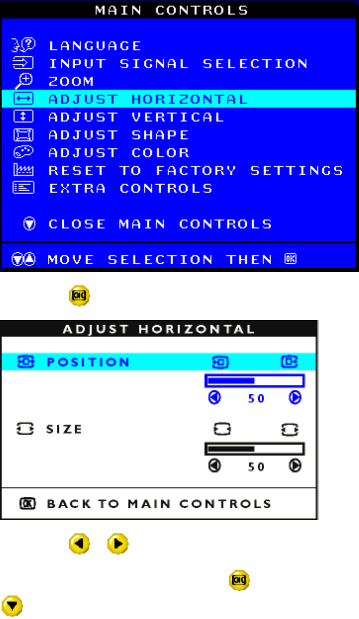3) Press the button. The ADJUST HORIZONTAL window appears. POSITION should be highlighted.