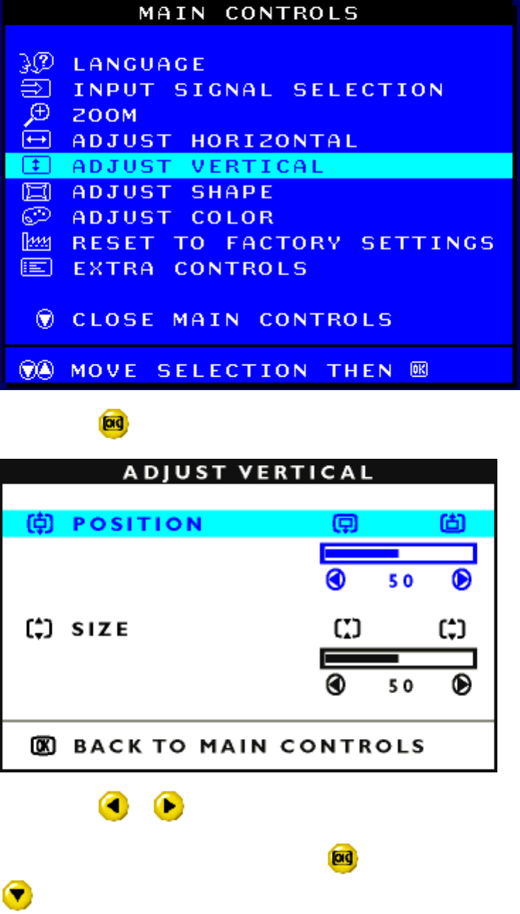 3) Press the button. The ADJUST VERTICAL window appears. POSITION should be highlighted.